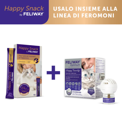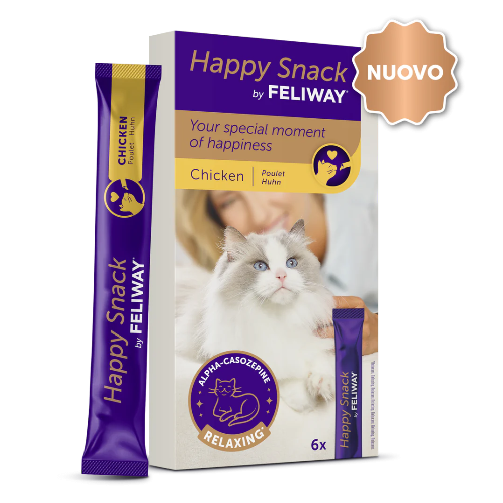 Happy Snack by FELIWAY, Uno snack delizioso e cremoso che aiuterà il tuo gatto a sentirsi meglio nelle situazioni di stress.