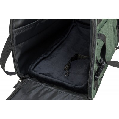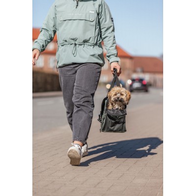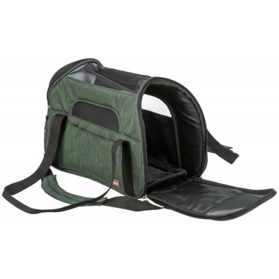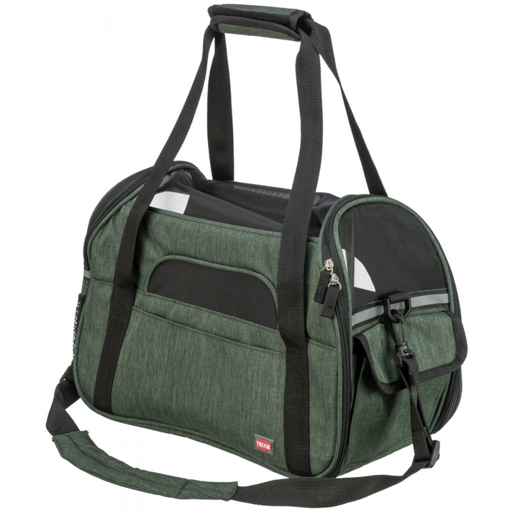 Pratica borsa per cani e gatti, con tracolla removibile, può essere fissata ad un trolley.