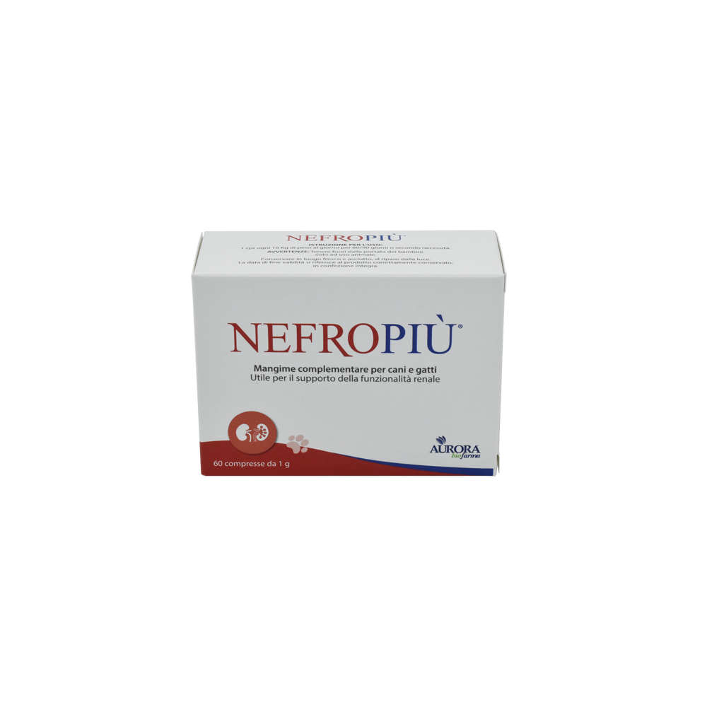 Nefropiù è un mangime complementare per cani e gatti, utile per il supporto della funzionalità renale.
