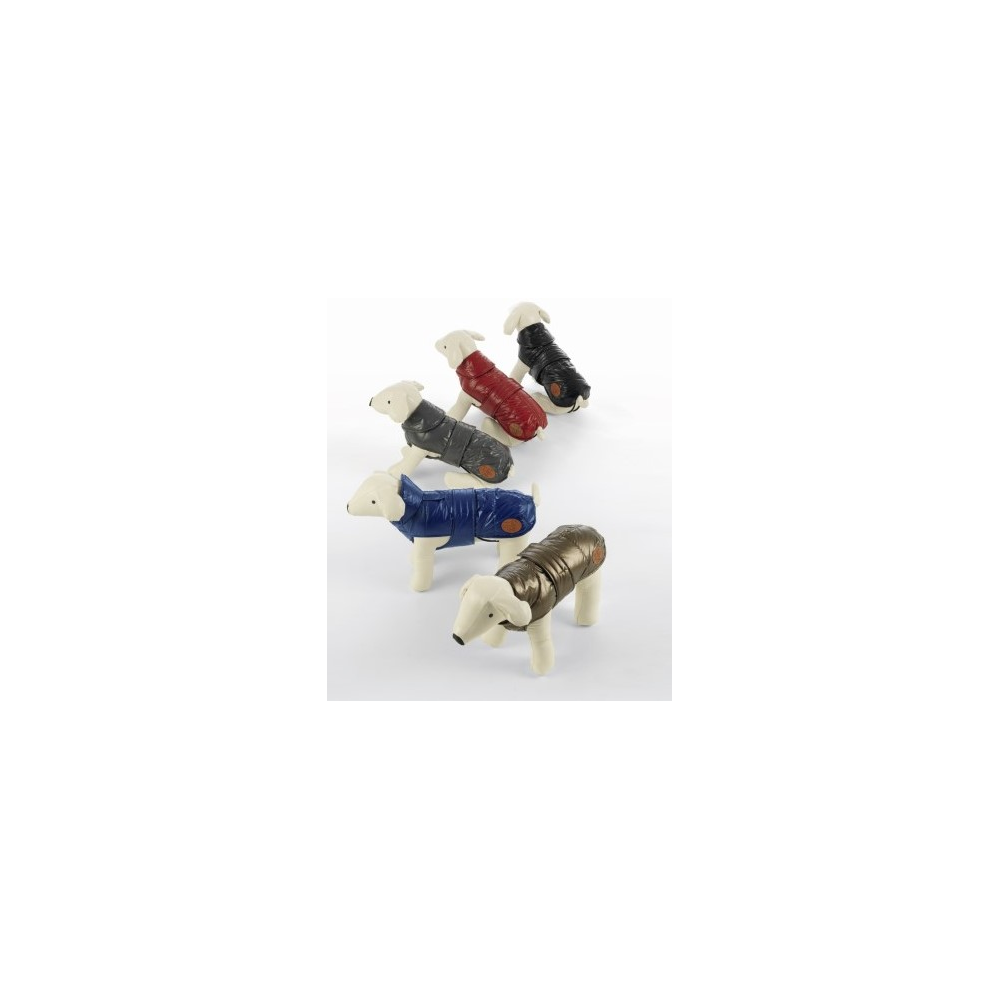 Cappottino per cani in tessuto antigoccia imbottito effetto "bomber". Dotato di foro per guinzaglio.