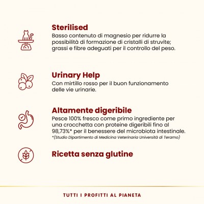 Ideali per i gatti sterilizzati: Le crocchette sono formulate per le esigenze dei gatti sterilizzati o poco attivi: un basso contenuto di magnesio per ridurre la possibilità di cristalli di struvite, un moderato contenuto in grassi e un adeguato apporto di fibre per aiutare il controllo del peso.