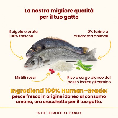 Scegliamo inoltre di non utilizzare nessun appetizzante chimico, o sale. L'utilizzo di carne o pesce freschi al 100% in ricetta offre un'elevata appetibilità naturale!