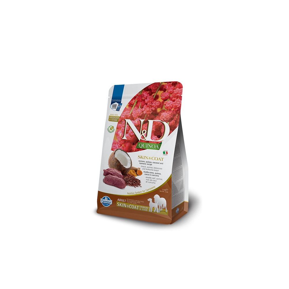 Farmina N&D Quinoa Medium&Maxi Skin&Coat Cervo, Cocco e Curcuma
