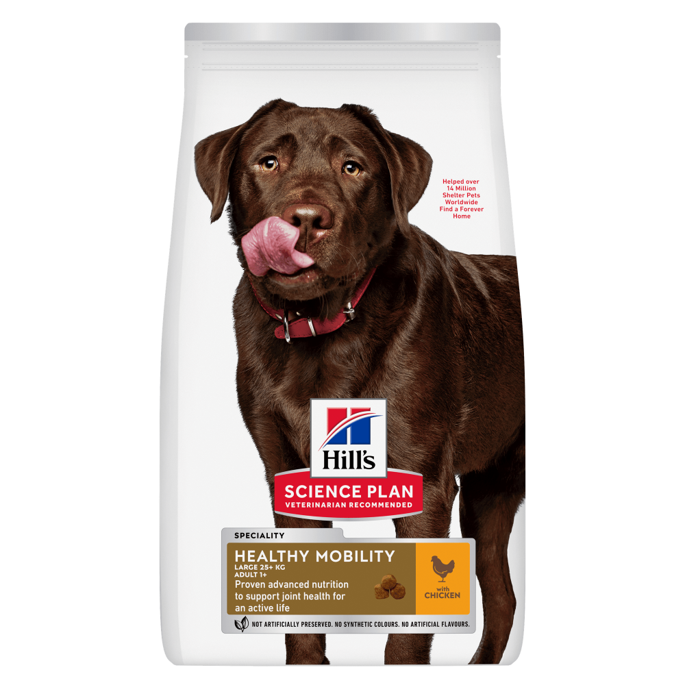 Hill's Science Plan Healthy Mobility Large Breed Adult Alimento per cani con pollo è formulato specificamente per favorire la salute delle articolazioni per una vita attiva.