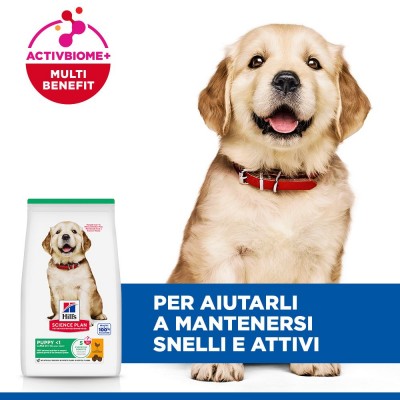 Hill’s Science Plan Puppy Large Breed alimento per cani con pollo è un alimento sano ed equilibrato al 100%. È appositamente formulato con tecnologia ActivBiome + Multibenefit, una miscela di fibre prebiotiche e antiossidanti. Un’alimentazione basata sulla scienza per favorire una vita lunga e sana.