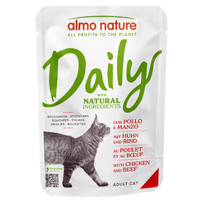 Daily è la linea di alimenti per gatti preparata con i migliori ingredienti freschi, ideali alla preparazione del pet food. Grazie a un’ampia varietà di ingredienti premium (carne rossa, carne bianca, pesce, uova, verdure e riso) le ricette Daily sanno soddisfare i gusti di tutti i gatti.