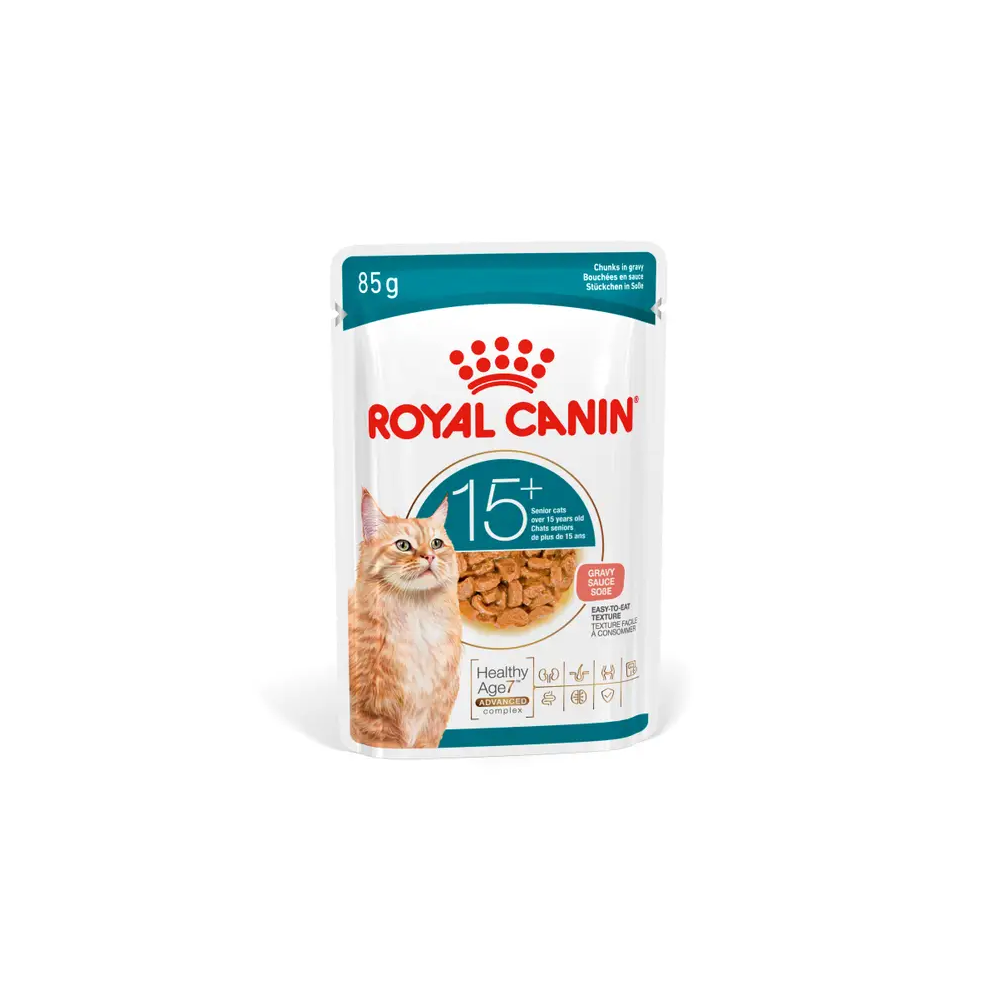 Ageing 15+ alimento completo in morbidi bocconcini in salsa o gelatina per gatti anziani di oltre 15 anni di età.