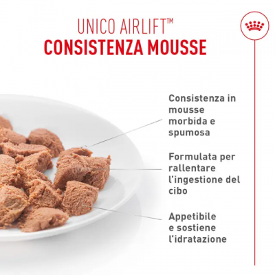 ROYAL CANIN® Digestive Care AirLift™ Mousse ha una consistenza morbida e spumosa che soddisfa sia le sensibilità alimentari specifiche sia il palato del tuo gatto.