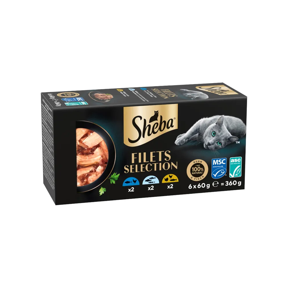 Sheba Filets Multipack Pesce Bianco, Salmone, Tonno 6x60g