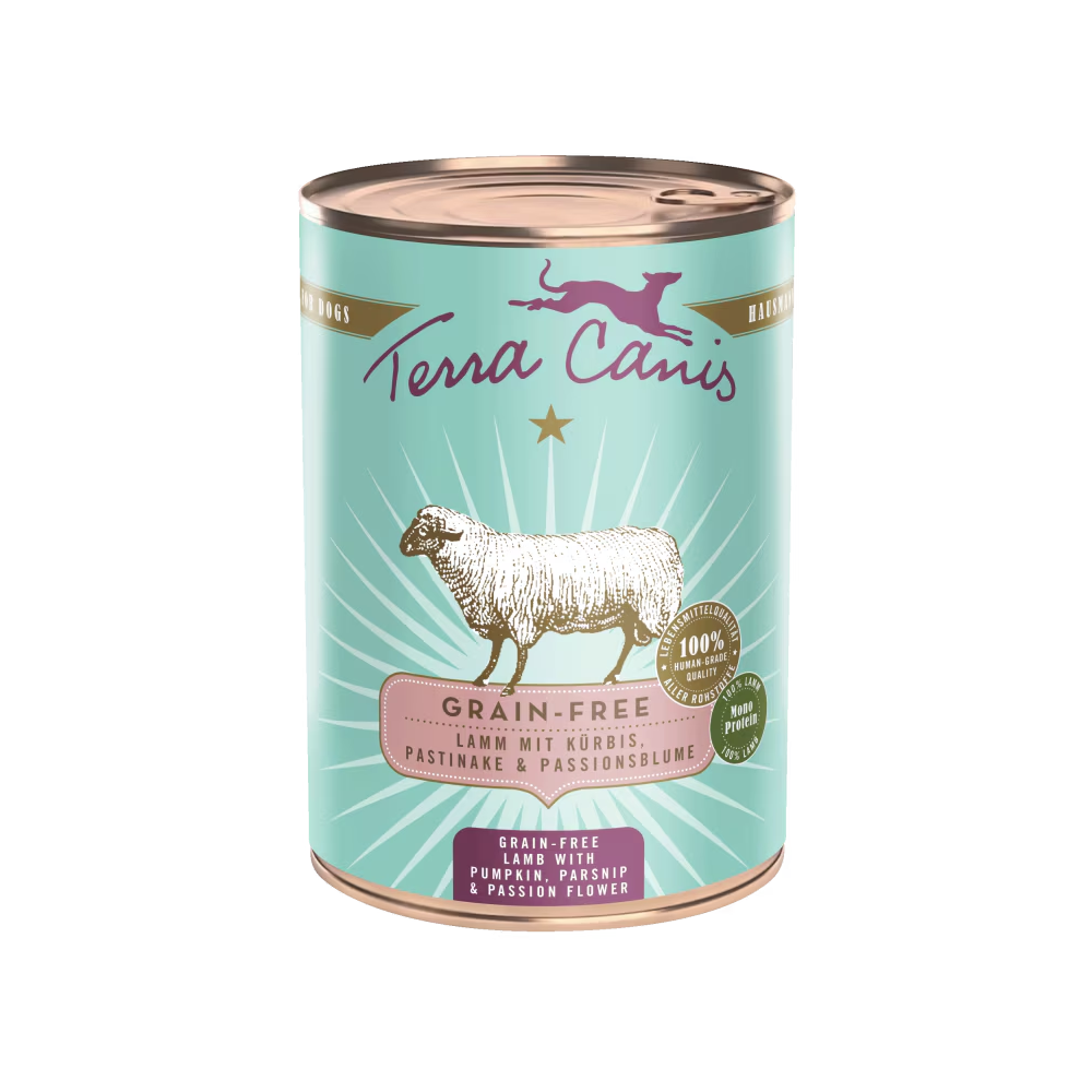I menù Terra Canis GRAIN-FREE vantano un’elevata quota di carne, accompagnata da ingredienti sani e ricchi di fibre come verdura, frutta ed erbe aromatiche. Additivi come alga marina, argilla, polline di fiore, sale delle Ande e lievito di birra forniscono una grande quantità di vitamine e minerali naturali. La farina di cocco è poi un vero superfood: altamente digeribile, senza glutine né colesterolo. È considerata una delle maggiori fonti di fibre, non irrita l’intestino e contiene importanti amminoacidi. L'olio di colza fornisce preziosi acidi grassi essenziali e completa i menù SENZA CEREALI. Questi menù sono adatti per tutti i cani sani, i cui padroni puntano a un’alimentazione senza cereali e adatta alla specie. Sono inoltre particolarmente idonei per cani con intolleranze ai cereali, così come per quelli che devono seguire un’alimentazione senza cereali per motivi medici.