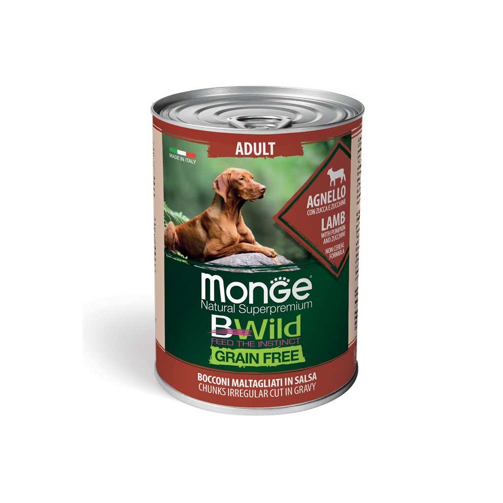Monge Natural Superpremium BWild Grain Free Formula All Breeds Cane Adulto è un alimento completo e bilanciato per cani adulti. Formulato pensando al benessere dei cani di tutte le taglie, grazie alla selezione di fonti alternative di carboidrati non derivati dai cereali, come zucchine e zucca. La ricetta è arricchita con prebiotici di ultima generazione xilo-oligosaccaridi (XOS) per il supporto del benessere intestinale. La formulazione supporta le articolazioni, grazie all’inclusione di glucosamina e solfato di condroitina. Indicato per i cani di tutte le taglie.