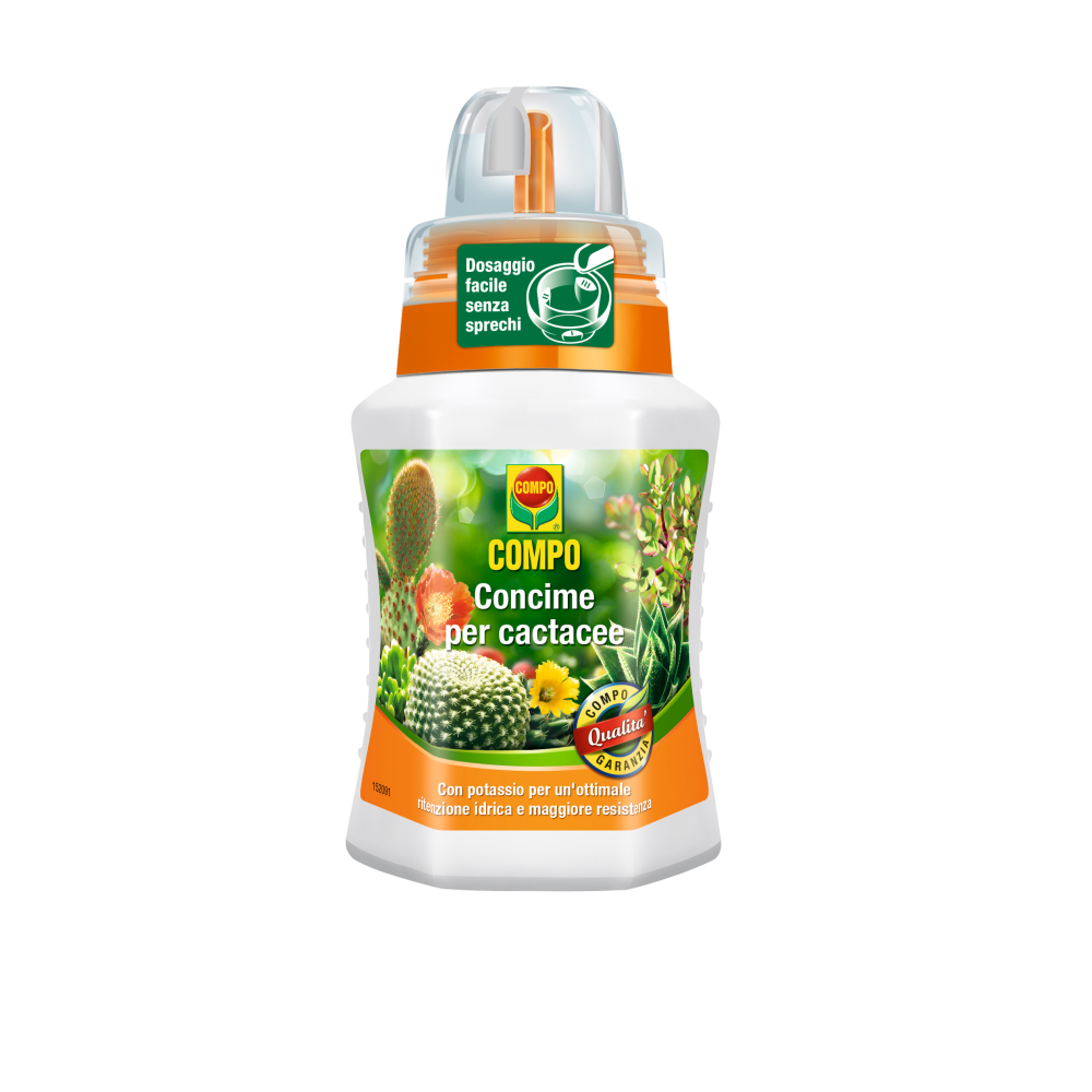 COMPO Concime per cactacee è il concime minerale specifico per tutte le cactacee e le piante grasse in genere. Lelevato contenuto di Potassio rafforza la struttura della pianta e conferisce alle piante una notevole resistenza alle avversità.