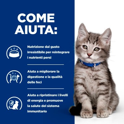 Come può aiutare: Un’ottima alimentazione per gattini per reintegrare le sostanze nutritive perse. Favorisce la salute intestinale e aiuta a migliorare la digestione. Contribuisce a ripristinare i livelli di energia e promuove la salute del sistema immunitario.