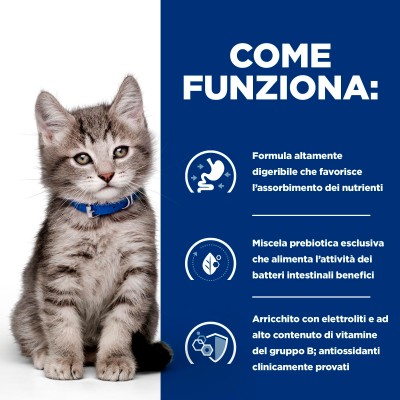 Hill’s Prescription Diet i/d Salute digestiva alimento secco per gattini con pollo è stato appositamente formulato dai nutrizionisti e dai veterinari Hill’s per favorire la salute dell’apparato digerente del tuo gattino.