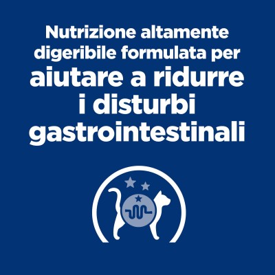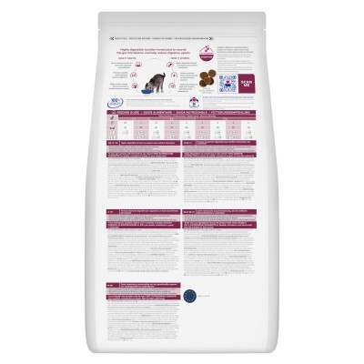 Hill’s Prescription Diet i/d alimento secco per gattini è un alimento dietetico completo altamente digeribile per la riduzione dei disturbi causati dal malassorbimento intestinale e per la compensazione della cattiva digestione e dell'insufficienza pancreatica esocrina nei gattini. Questo alimento presenta livelli aumentati di sodio e potassio e ingredienti altamente digeribili.