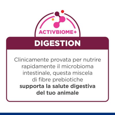 ActivBiome+ Digestion è una miscela proprietaria di prebiotici che ha dimostrato di nutrire rapidamente il microbioma intestinale per favorire la salute e il benessere dell’apparato digerente