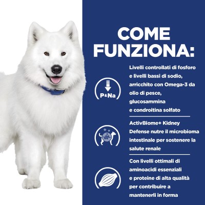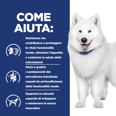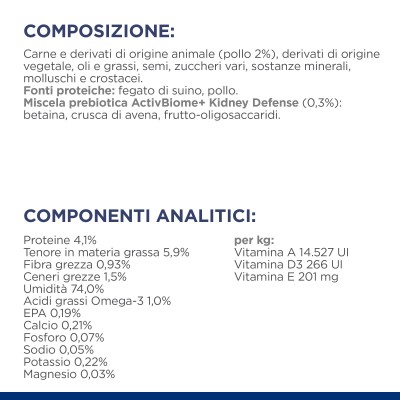 Prescription Diet k/d + Mobility combina la comprovata alimentazione di Prescription Diet k/d Kidney Care con la tecnologia e l'efficacia di Prescription Diet j/d Mobility. Formulato con ActivBiome+ Kidney Defense, una miscela brevettata di prebiotici che ha dimostrato di nutrire il microbioma intestinale per aiutare a sostenere la funzione renale.