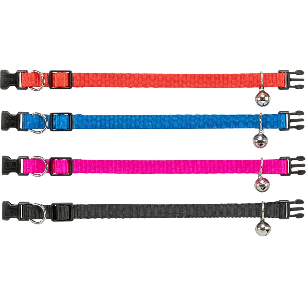 Collari per gatto in nylon con chiusura di sicurezza e piccole campanelle. regolabile. Colori assortiti.