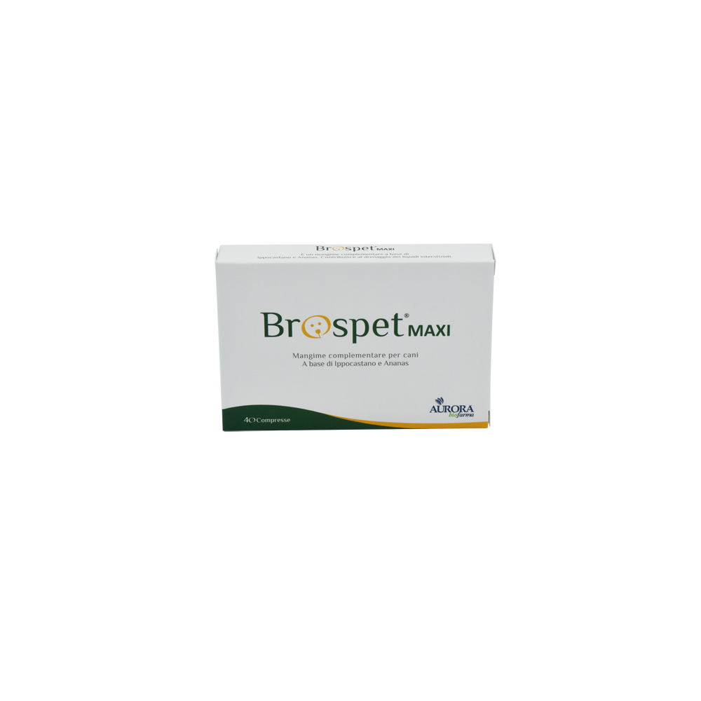 Aurora biofarma brospet compresse è un mangime complementare per cani a base di Maltodestrine fermenta te da Aspergillus, Lppocastano e Ananas. Contribuisce al drenaggio dei liquidi interstiziali.