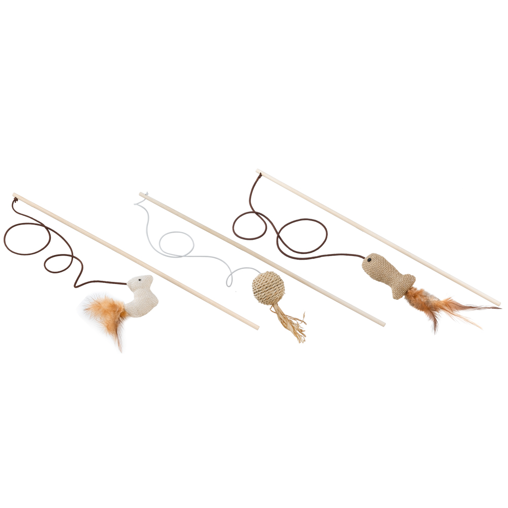 Canna da pesca in legno con topolino per gatti. Dimensione: Ø 0,6 x 40 cm.