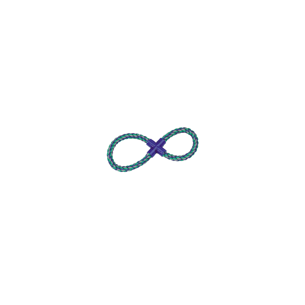 Doppio anello in corda di cotone multicolore per far divertire il tuo cane, con una lunghezza di ben 38 cm.