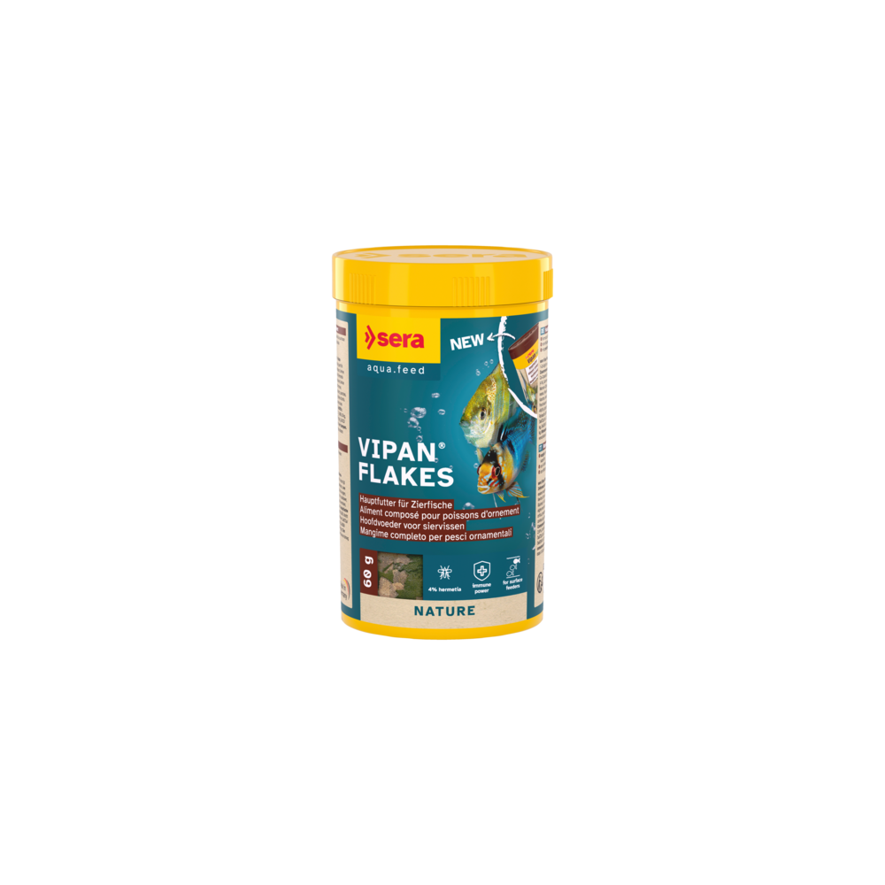Vipan Flakes è il mangime completo costituito da scaglie galleggianti senza coloranti e conservanti per tutti i pesci ornamentali che si nutrono in superficie.